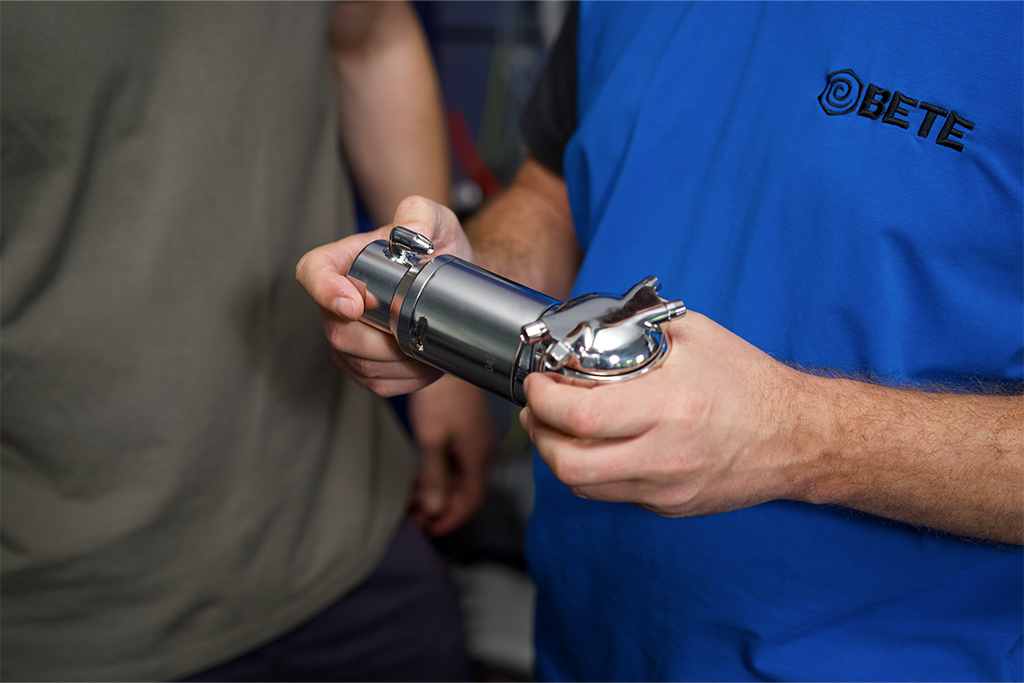 Typische Herausforderungen bei der Reinigung sind die unzureichende Erreichbarkeit aller Innenflächen mit statischen Sprühköpfen, der hohe Ressourceneinsatz in Form von Zeit, Wasser und Chemie sowie die Sicherheitsrisiken durch den Zugang ins Behälterinnere. Auch die Flexibilität bei der Installation von Reinigungsanlagen ist wichtig, da sowohl feste Rohrkonstruktionen als auch mobile Lösungen benötigt werden. BETE hat einen Lösungsansatz entwickelt, der den Einsatz von Zielstrahlreiniger mit stark fokussierten Vollstrahlen umfasst und sowohl feste als auch mobile Installationen ermöglicht.